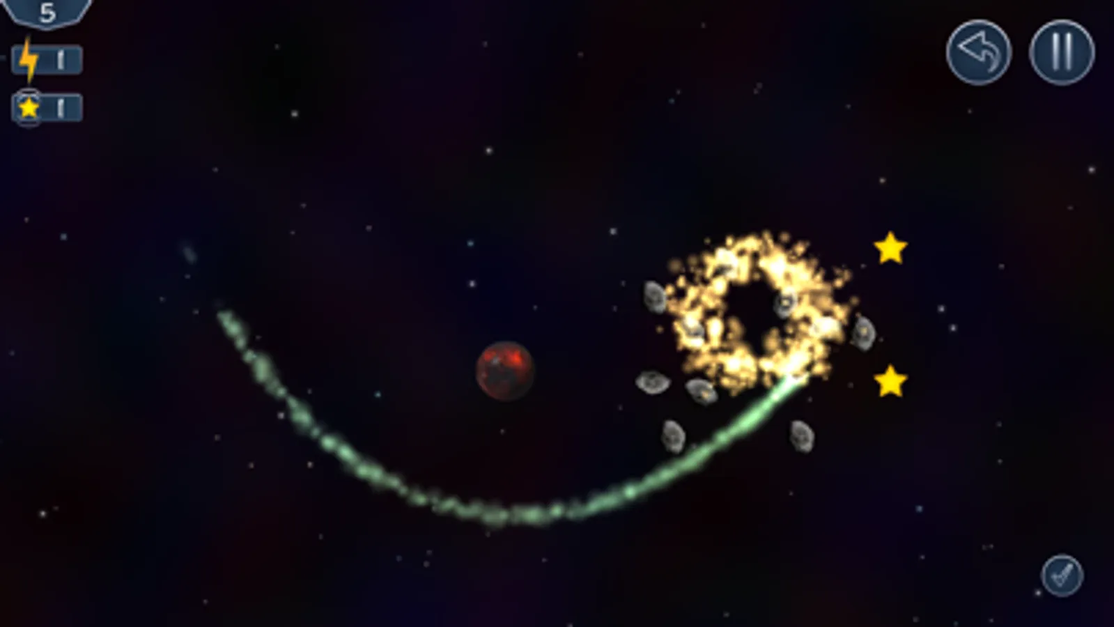 • Position planets and use gravity to guide asteroids into bright stars.