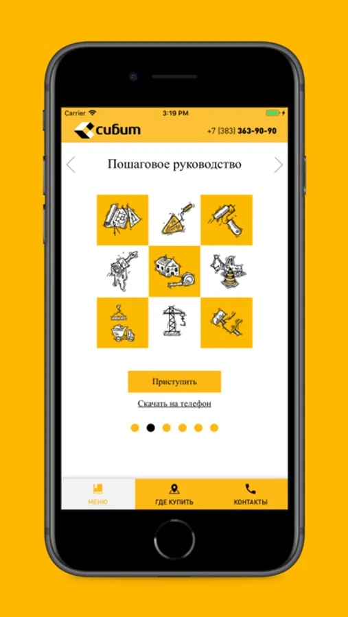 У приложения интуитивно понятное управление: запустив приложение, Вы увидите список доступных разделов, каждый из которых открывает доступ к подсказкам, рекомендациям и правилам работы с газобетоном Сибит на каждом этапе строительства. Так же Вы сможете пригласить специалиста на объект с помощью удобной формы, с легкостью записаться на обучение или на экскурсию по Заводу «Сибит».