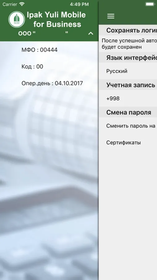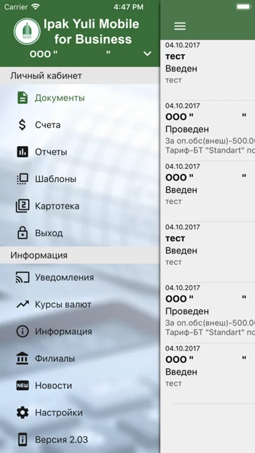 - Просмотр документов за любой день, со дня открытия счетов в банке;