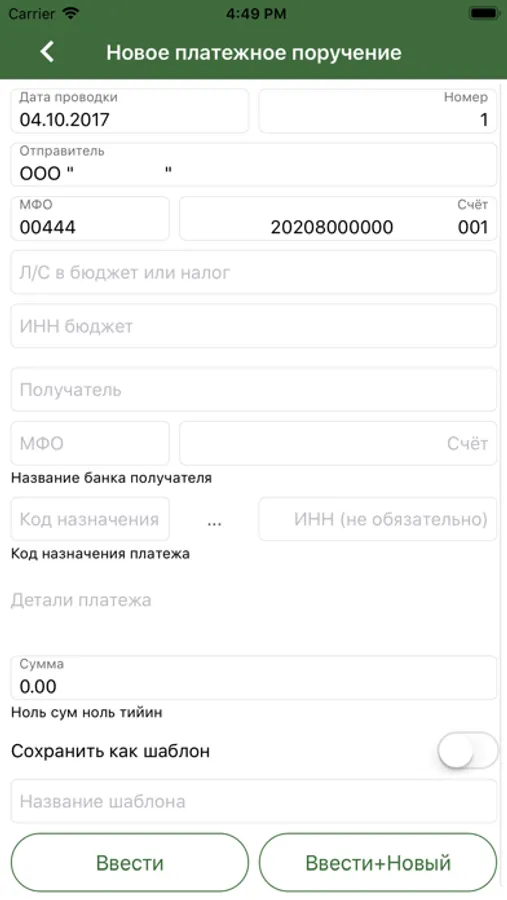 - Создание и отправка платежных поручений текущей датой или следующим днём;