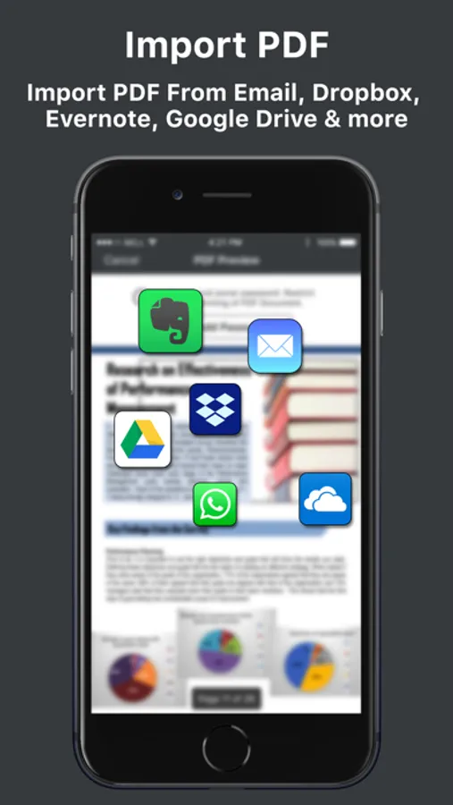 - Import files from local device, Email, Dropbox, Google Drive, OneDrive etc