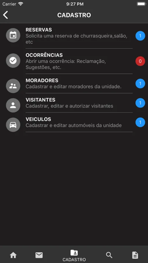 - Reservas de áreas comuns (Churrasqueira, Salão de festa, etc (Se tiver habilitado para o seu condomínio)