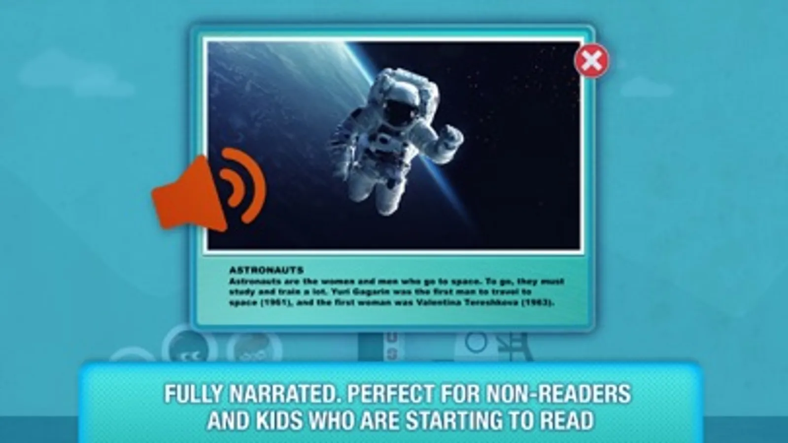 "What’s in Space?” It is the perfect app for curious children. With easy and simple narrated texts, educational games, and incredible illustrations, children will learn basic information about space: what planets are in the solar system, what each planet is like, the constellations that can be seen in the sky, the astronauts, the spaceships...