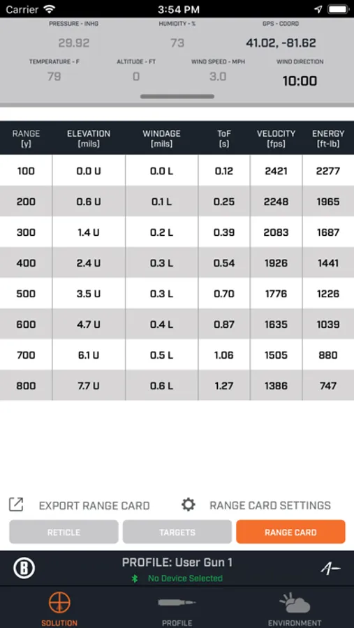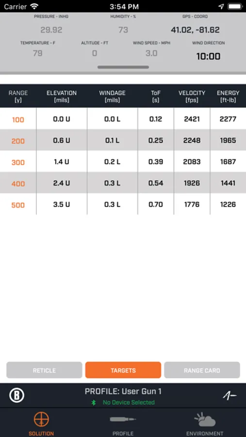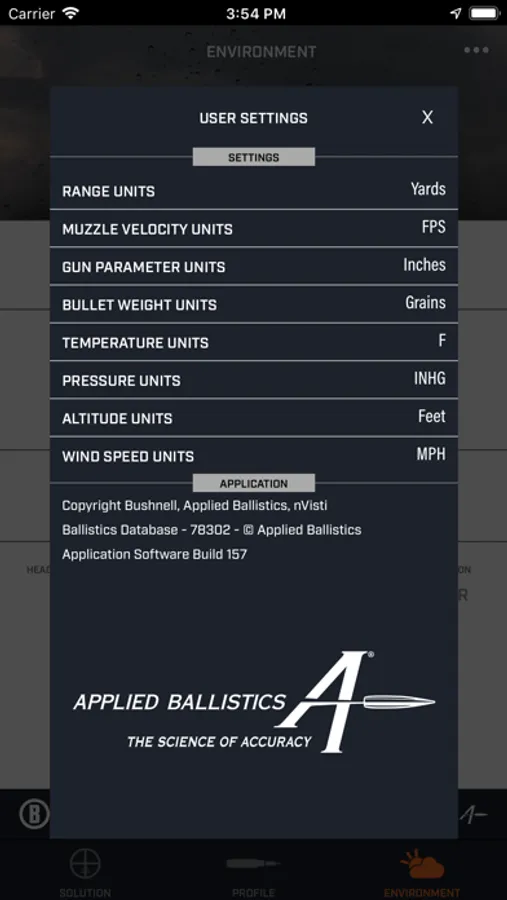 Welcome to the new Bushnell® Ballistics Application powered by Applied Ballistics®. It is a full-featured ballistics solver to use with your Bushnell rangefinders and riflescopes to calculate firing solutions. It allows you to use current atmospherics to calculate the holds and display the ranges at each subtension on your reticle. With this application, you can build and modify gun profiles, create a custom target, show a range card and calculate firing solutions based on your exact scope and ammunition. Additionally, range cards may be emailed to yourself or a friend.