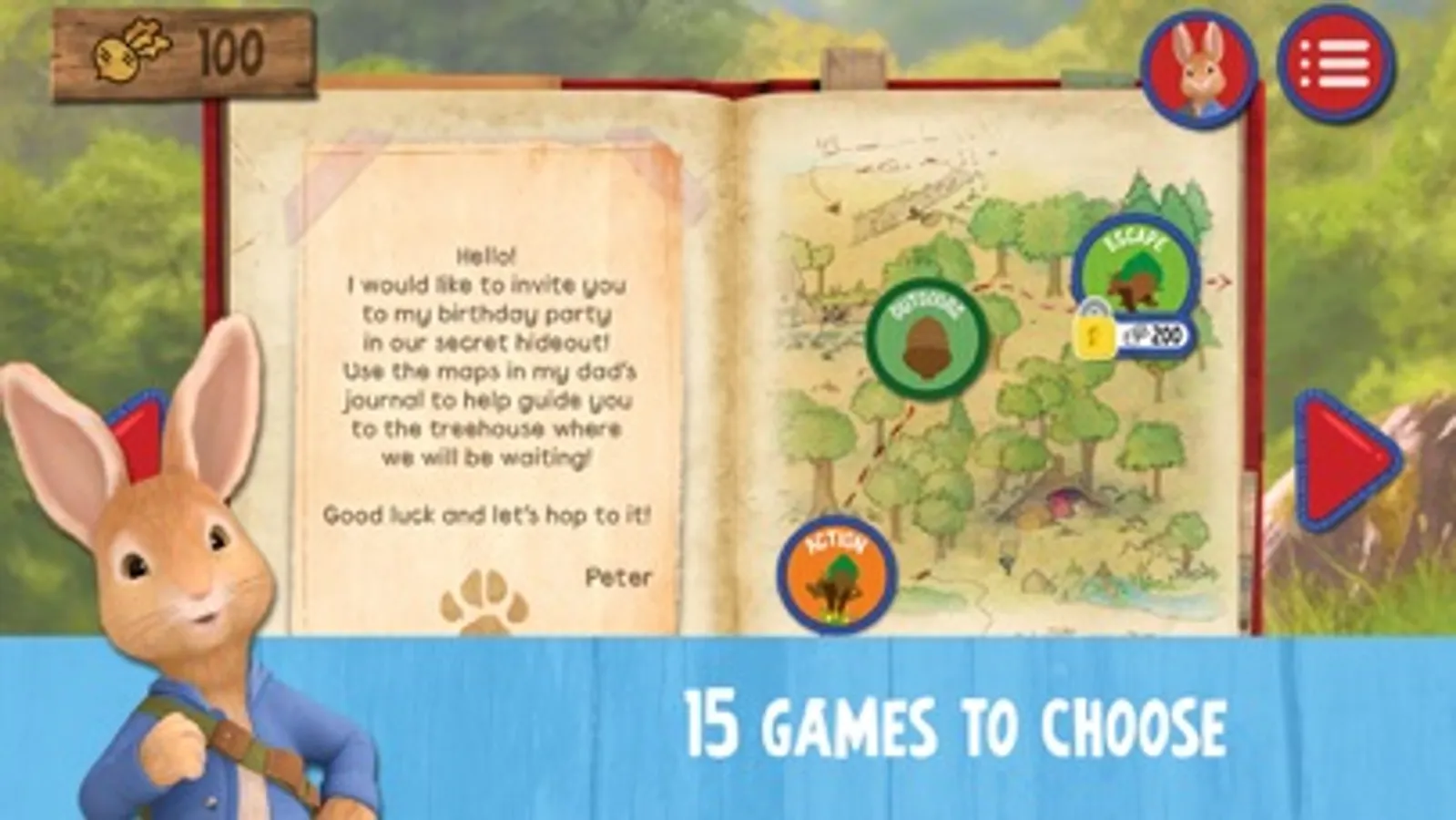 Complete all the games and go to Peter Rabbit’s treehouse, where he will be waiting for you with all his friends to celebrate a big party.
