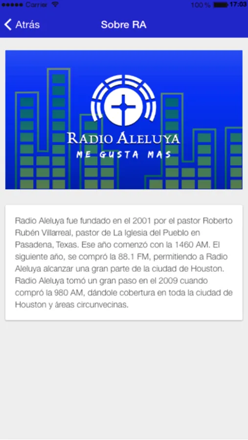Radio Aleluya fue fundado en el 2001 por el pastor Roberto Rubén Villarreal, pastor de La Iglesia del Pueblo en Pasadena, Texas. Ese año comenzó con la 1460 AM. El siguiente año, se compró la 88.1 FM, permitiendo a Radio Aleluya alcanzar una gran parte de la ciudad de Houston. Radio Aleluya tomó un gran paso en el 2009 cuando compró la 980 AM, dándole cobertura en toda la ciudad de Houston y áreas circunvecinas.