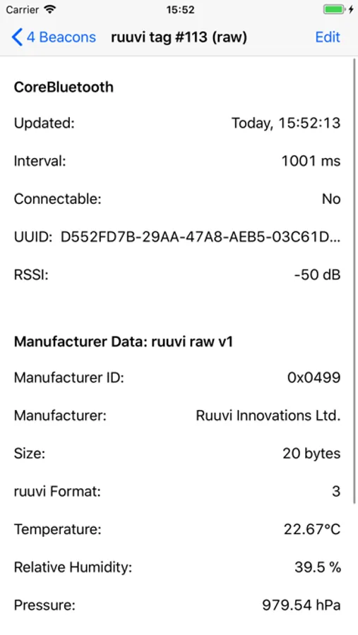 Core Beacons displays general CoreBluetooth information and, if advertised by a device, service and/or manufacturer-specific data. Detailed parsing support is available for