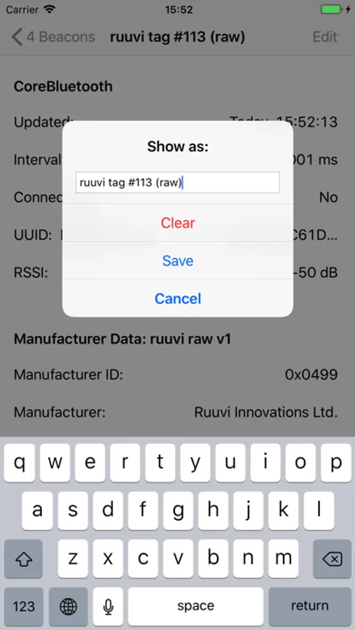 Core Beacons is a development tool for iOS. Core Beacons lists the advertisements of Bluetooth LE devices in range, as made available to applications by the CoreBluetooth API. Core Beacons lets you explore your "Bluetooth environment" and shows how your iOS device presents this environment to applications.