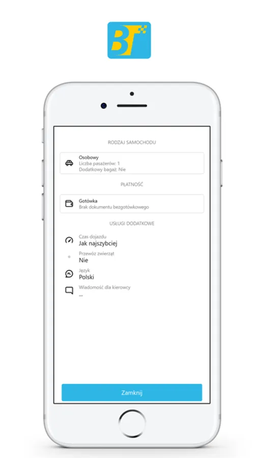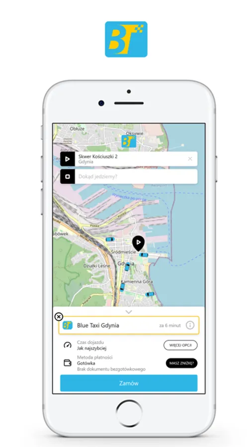 Darmowa aplikacja służąca do zamawiania taksówek w korporacji BLUE TAXI GDYNIA.