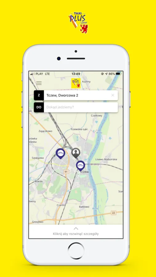 Zamów TAXI Tczew jednym kliknięciem i obserwuj na żywo jak jedzie po Ciebie.