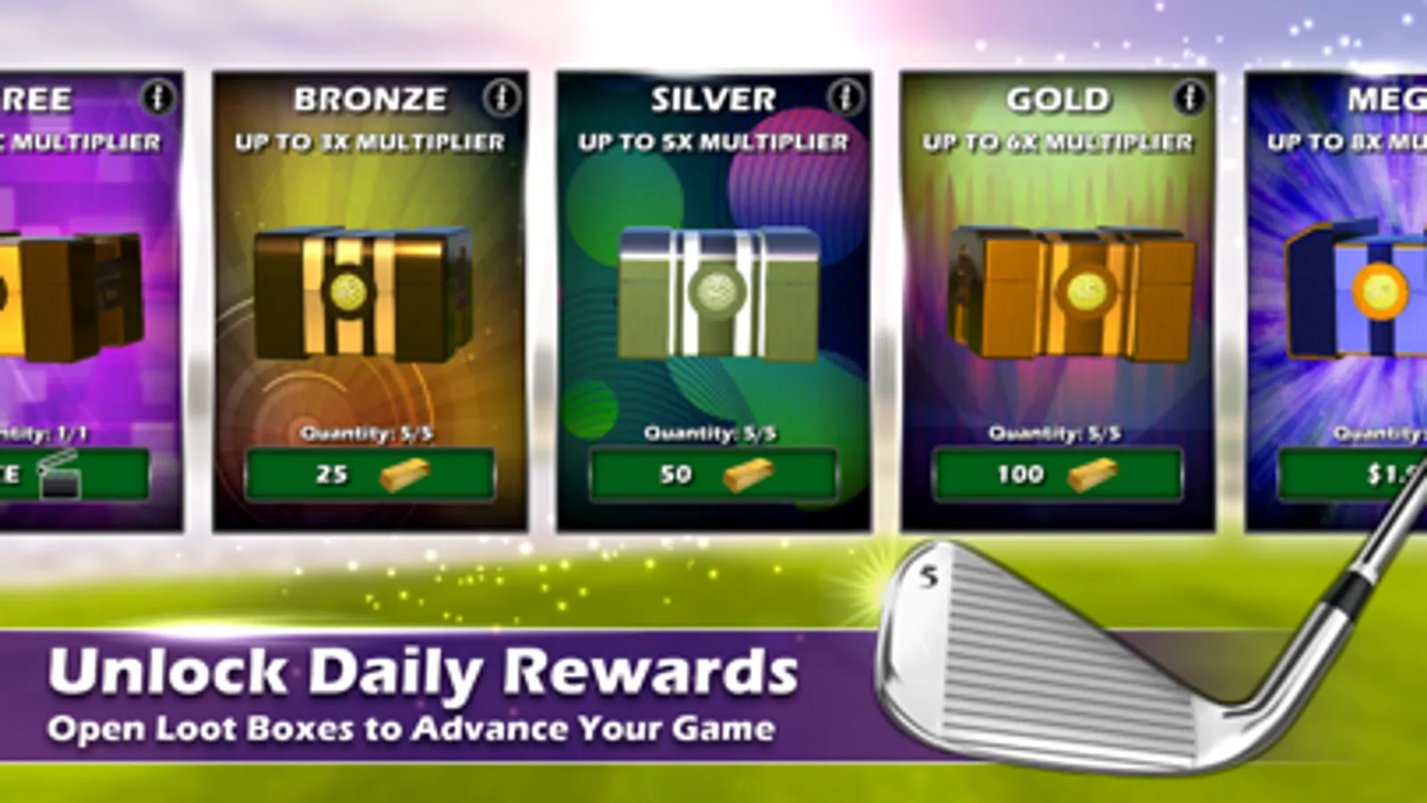 -Go beyond the arcade cabinet! Level up your equipment to enhance performance on the fairway. Improved club sets will pave the way to better scores and higher standings than ever before! And take a peek at the nifty Extra Clubs that are available for purchase.