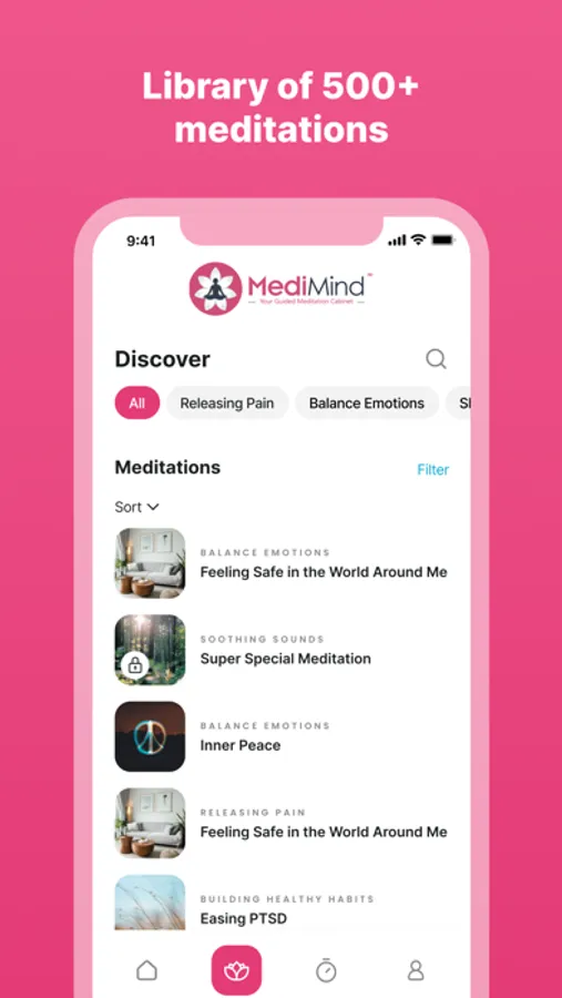 FIND the meditations you love with the greatest ease ever! More powerful integration of personalization including the ability to save your favorite meditations, a “For You” homepage with a “Continue Listening” feature, and the “Trending Meditations” for all MediMind users. “Discover” library view with more a powerful search tool that allows you to search by category, keyword, meditation guide, and title.