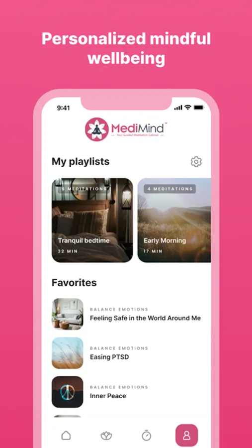 Guided meditation personalized “For You!” CUSTOMIZE your experience with the ability to reset your “Meditation Focus,” save your own customized “Timer” sessions, and customize your profile look and feel. With meditation recommendations personalized to “Your Meditation Focus,” including:
