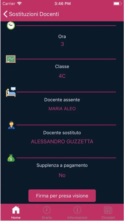 L'applicazione permette di visualizzare le sostituzioni pianificate dalla vicepresidenza dell'istituto d'appartenenza. L'app funziona con il relativo software di gestione se adottato dall'istituto. Per informazioni www.sostituzionidocenti.com