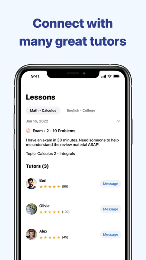 - Find your ideal tutor: Easily compare tutors by looking at their ratings/reviews, background check verification, and experience