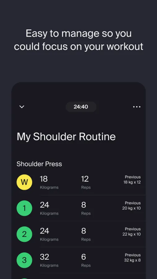 - Support for tracking regular weighted exercises as well as bodyweight and static exercises