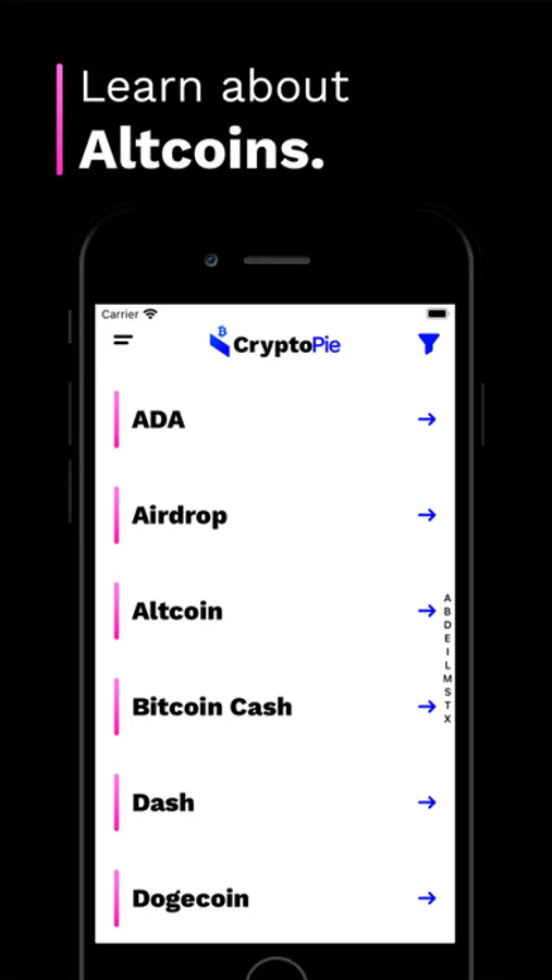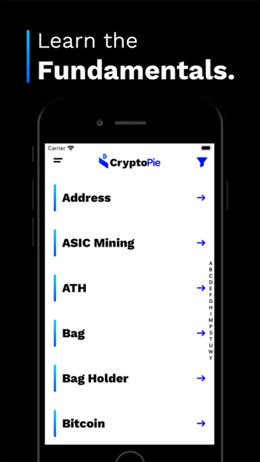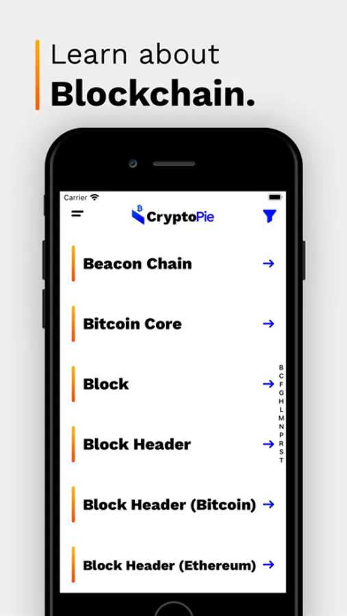 Crypto Pie is a comprehensive dictionary of 200+ Cryptocurrency and Blockchain terms, all concisely written and easily explained for the average Jane and ordinary Joe. No computer science degree required! Already know the basics? Crypto Pie has an extensive term list; including General, Fundamental Crypto, Blockchain, Altcoin & Token, Web3 & Advanced Crypto. Each term is uniquely categorized to help you learn the ropes quicker.