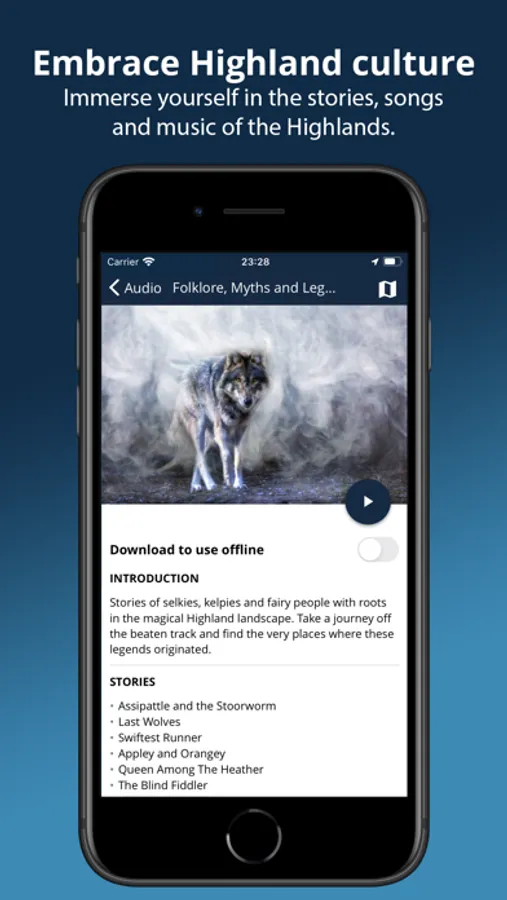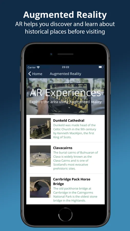 • Belong to the Scottish Highlands, as you embrace the culture through music, song & stories, whilst confidently discovering the greatest experiences and hidden gems. • AR helps you discover and learn about historical places before visiting.