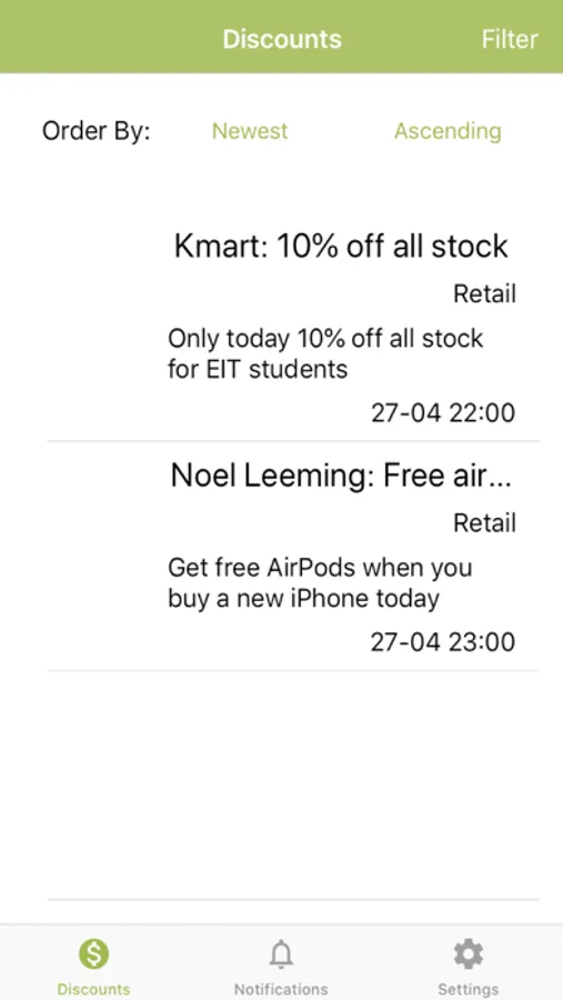 Enjoy the latest news that the EIT Student Association "Younited" has for you. Younited negotiates discounts for their students at local stores. Current and upcoming discounts become available in this app. You can easily sort the list of discounts by 'distance', 'newest', or 'category'. For example, you can have the nearest store with a discount at the top of your list when you are in town. Other important news from Younited will pop up as notifications to support you as a student at EIT.