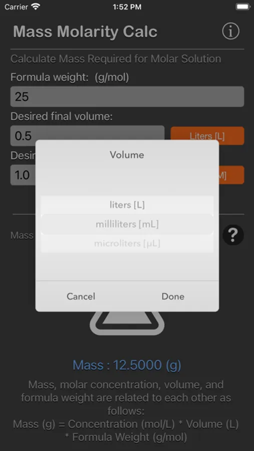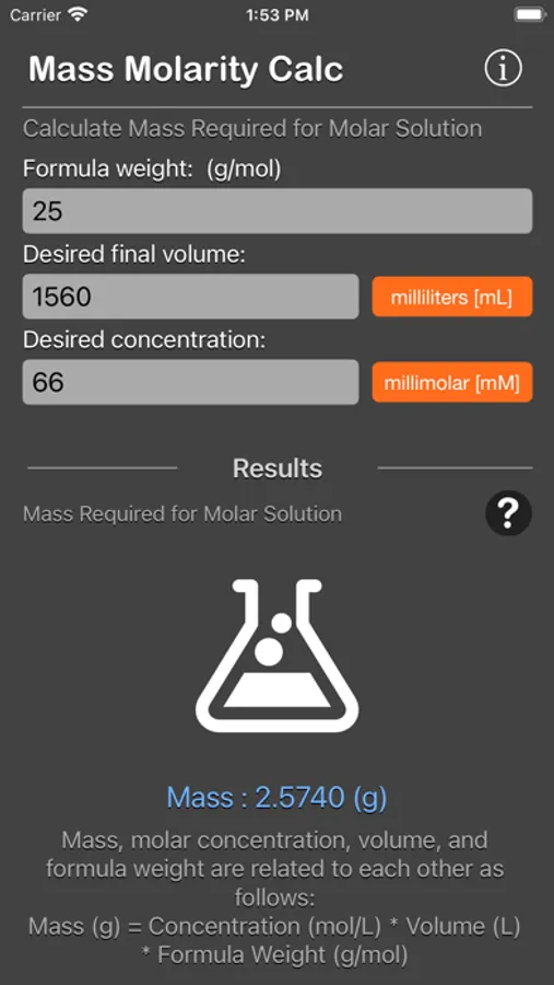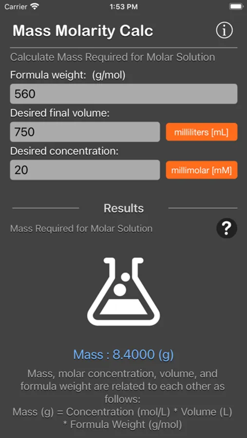 The mass molarity calculator tool calculates the mass of compound required to achieve a specific molar concentration and volume.