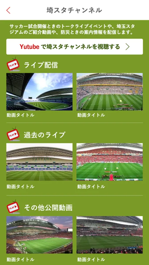 埼玉スタジアム2002の公式アプリがついに登場! 埼玉スタジアム2002の座席案内をはじめ、動画コンテンツの「埼スタチャンネル」、位置情報を利用した周辺公園部分のご案内をリリースしました。