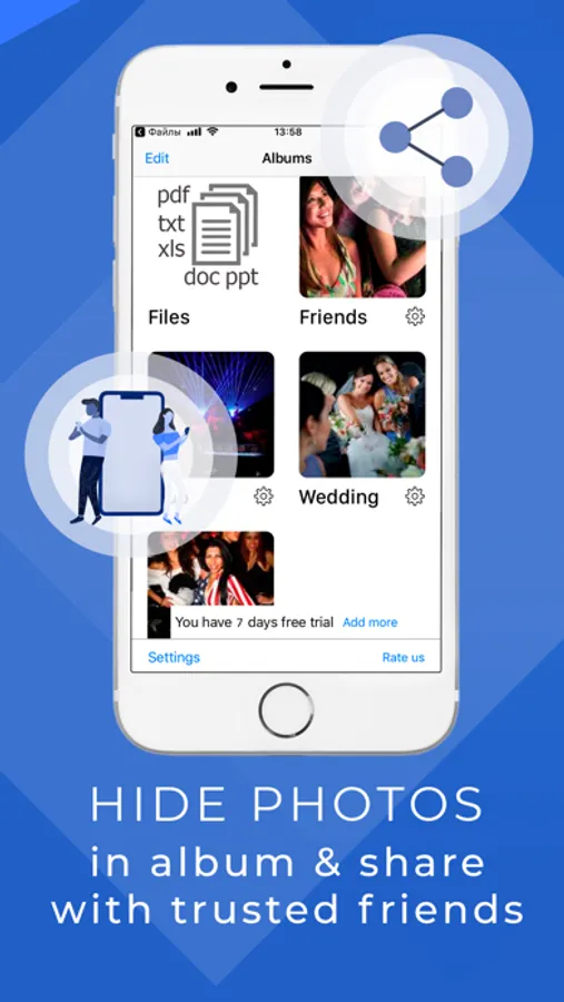 User can choose Fake PIN to hide photos, videos & other files types. Private storage is twice protected from prying eyes and skillful crackers.