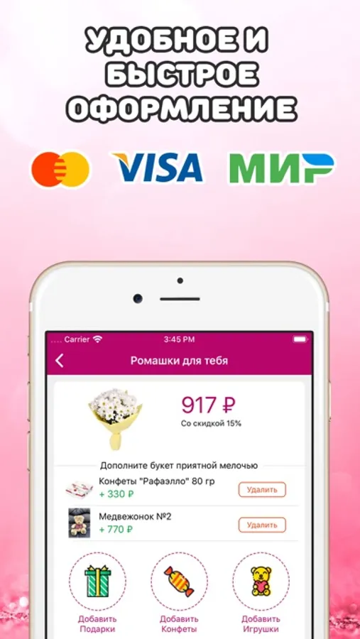 - Приложение без регистрации. Минимум шагов для поиска и заказа доставки цветов.