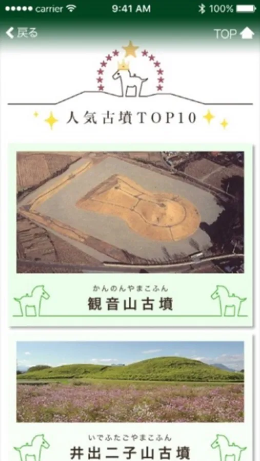 【群馬県教育委員会文化財保護課 公式アプリ】 群馬県内には、東日本最大の前方後円墳である天神山古墳(太田市)をはじめ、数多くの古墳や関連遺跡が残されています。こうした古墳や遺跡、関連する博物館をめぐりながら、その魅力を感じていただくためのアプリです。古墳探訪のお供に、是非ご利用ください。【アプリの特徴】 ・いろいろなスポット検索が簡単にできます。