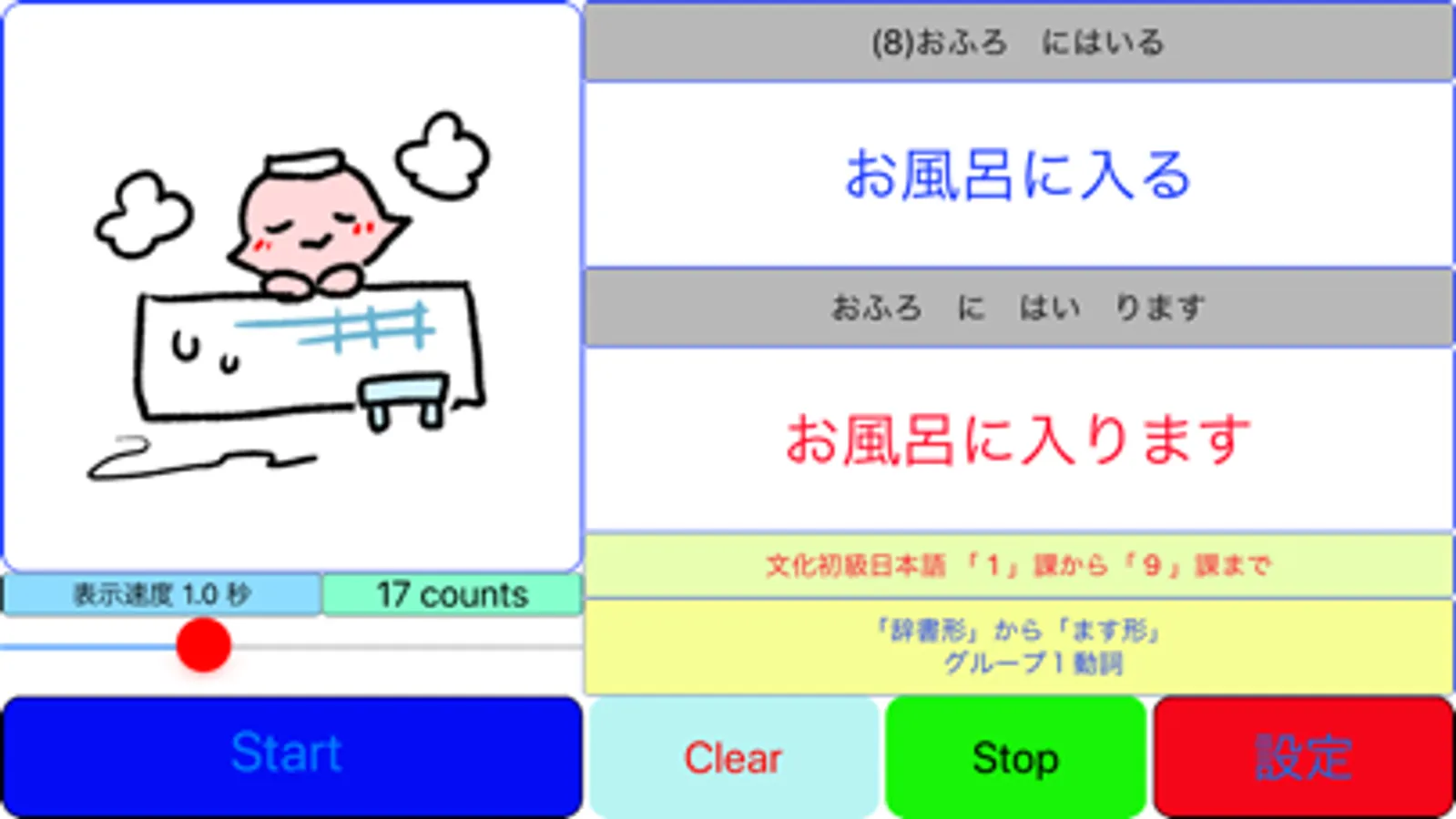 ・動詞の語数は暫定版ですので「文化初級日本語Iの9課まで+アルファ」で72語です。その他はデータを編集することにより対応可能です。 ※ 間違いがあったらメールで教えて下さい(^^)/