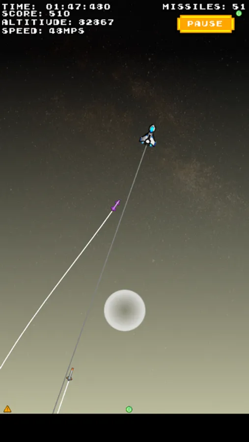 A fast paced, 8-bit themed missile run game, you must race to the stars and dodge an onslaught of incoming missiles before you become cindered stardust yourself.