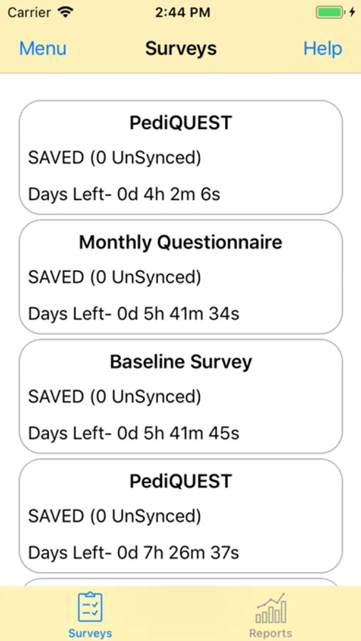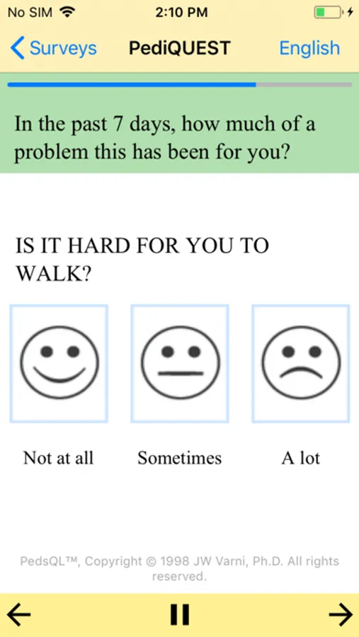 • Users may occasionally be asked to answer other surveys using the PediQUEST app (for example, parents may be asked about how they are feeling).