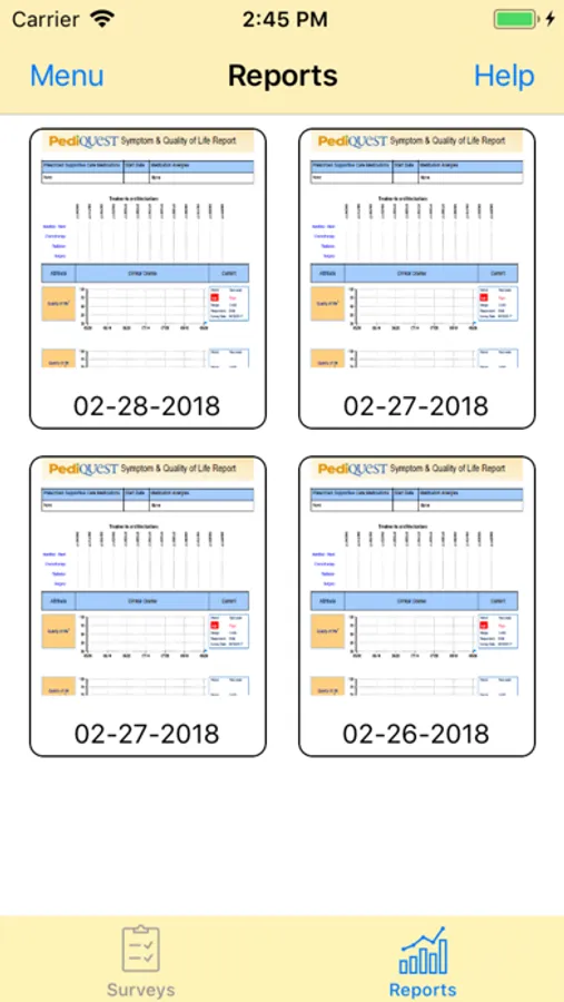 4. If the report feature is enabled for you, you will be able to see summary reports for each of the answered surveys. Reports summarize survey answers for the past three months, so they can help understand how the child has been doing lately.