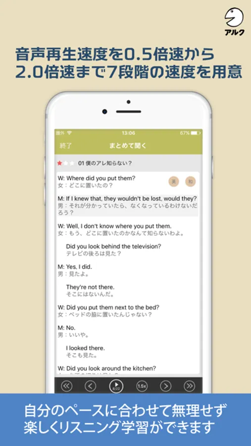 ・ 本アプリは、(株)アルクからコンテンツの利用許諾を受け、(株)プレイスクエアが開発、販売並びユーザーサポートを行っております。