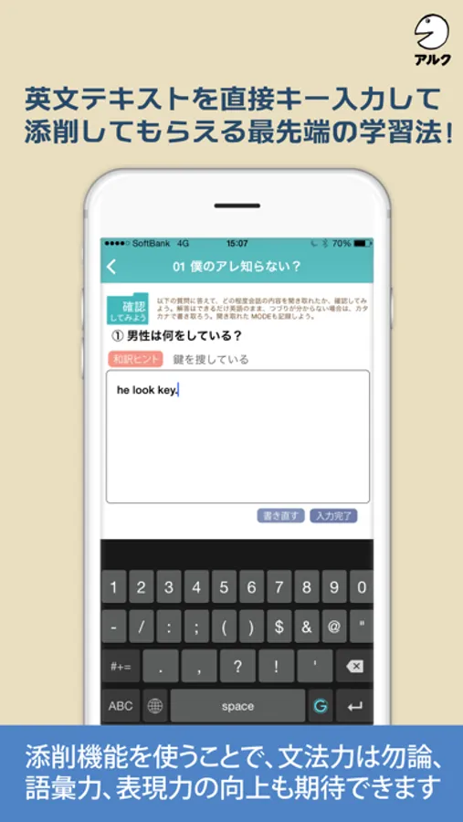 ・ 本アプリにはユーザーが入力した英文をリアルタイムで添削してくれる「EasyWriting」が搭載されています。