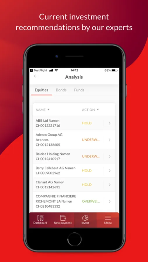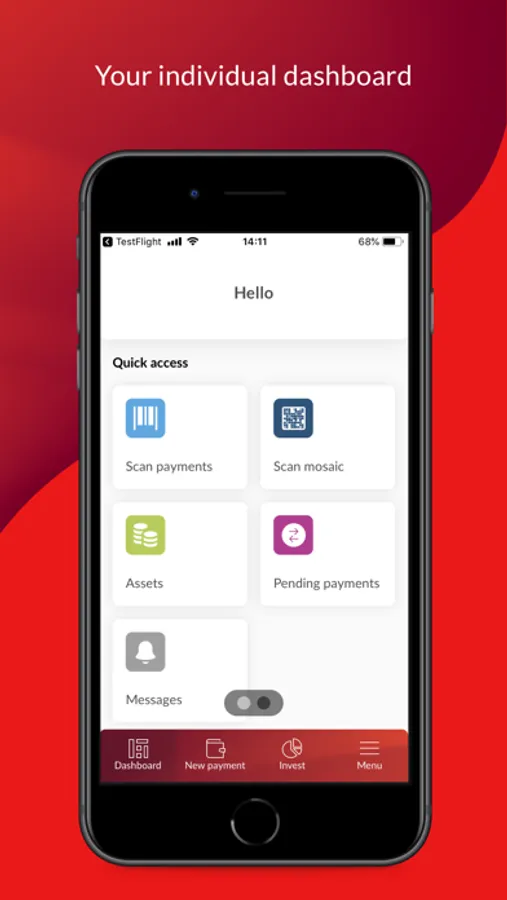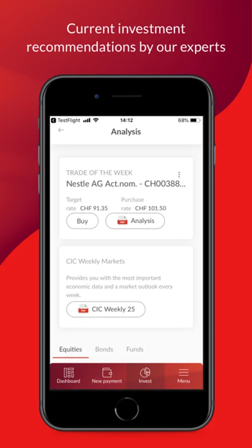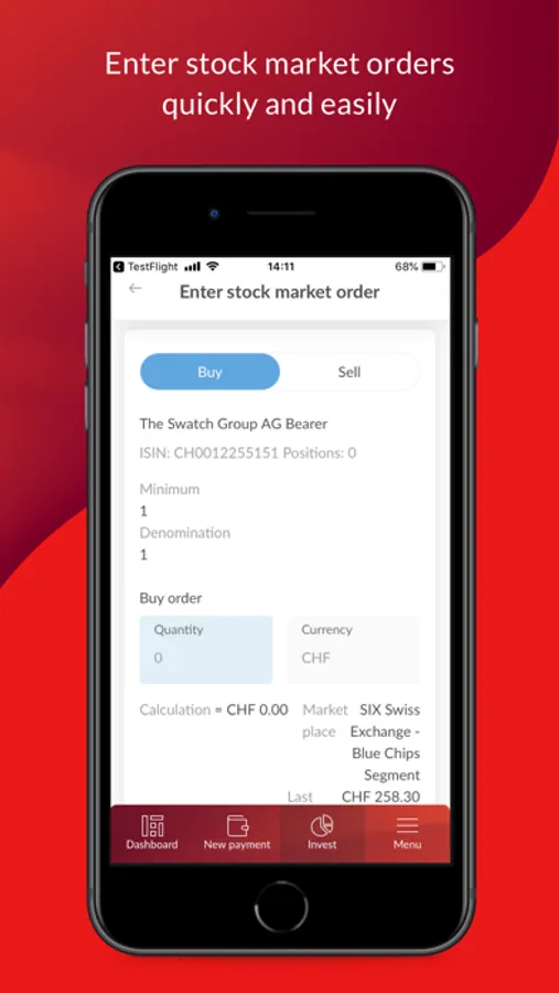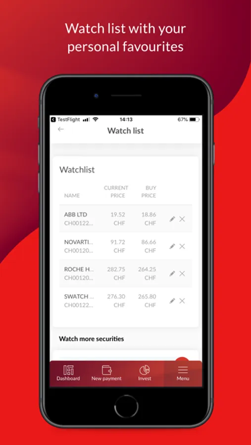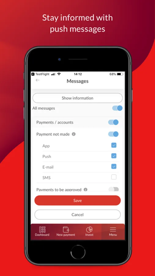 • Receive push messages on your smartphone or tablet, e.g. about account movements, eBills received, payments to be approved or stock market orders executed.