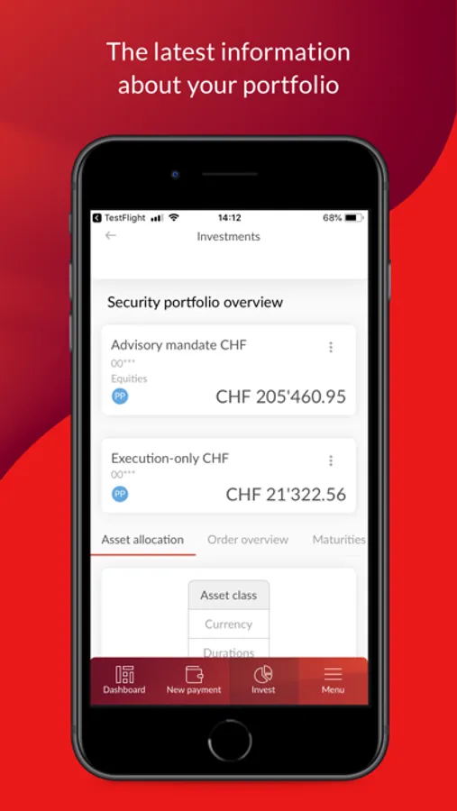• In the investment overview, you’ll find up-to-date information about your portfolio and see the performance of your investments. You can also see all individual positions and transactions, with detailed information