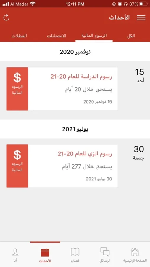 الأحداث: سيتم إدراج جميع الأحداث مثل الامتحانات والعطلات ومواعيد استحقاق الرسوم في تقويم المؤسسة. سيتم تذكيرك على الفور قبل الأحداث الهامة. لدينا قائمة العطلات في متناول اليد تساعدك على التخطيط لأيامك مقدما.