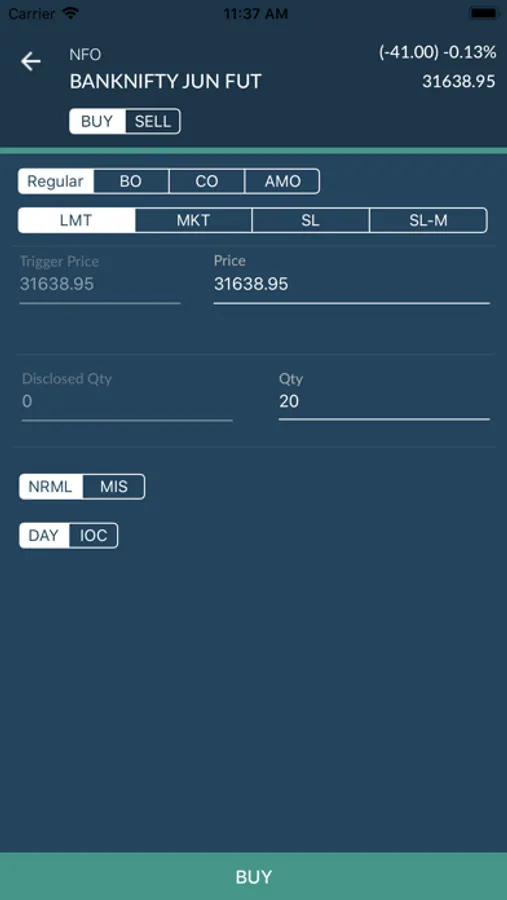 # Place market, limit, stop loss, cover, bracket and after-market, day and IOC orders