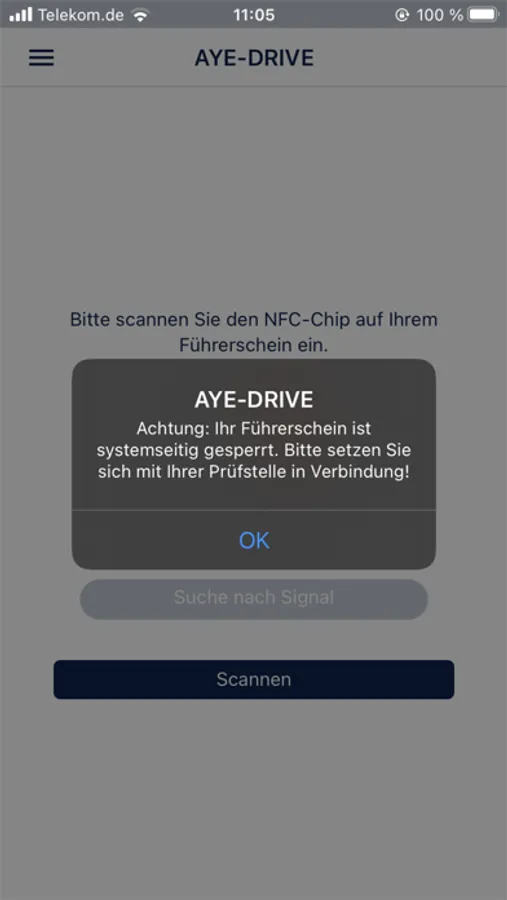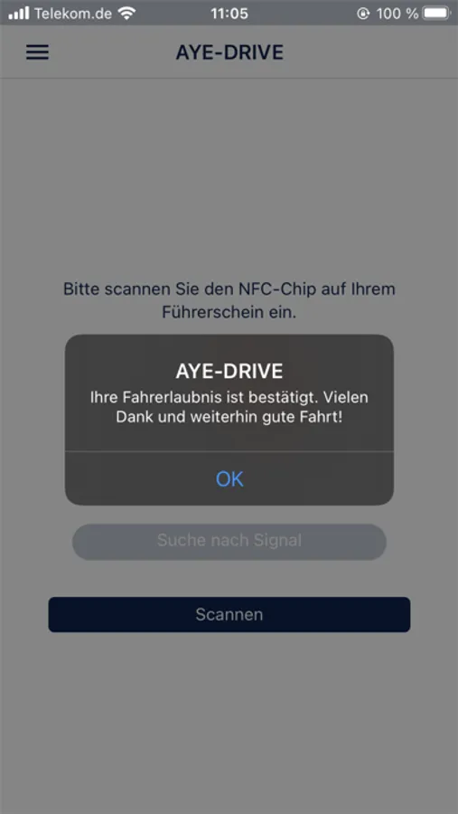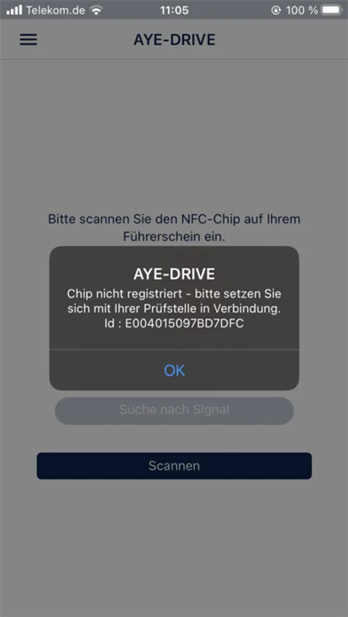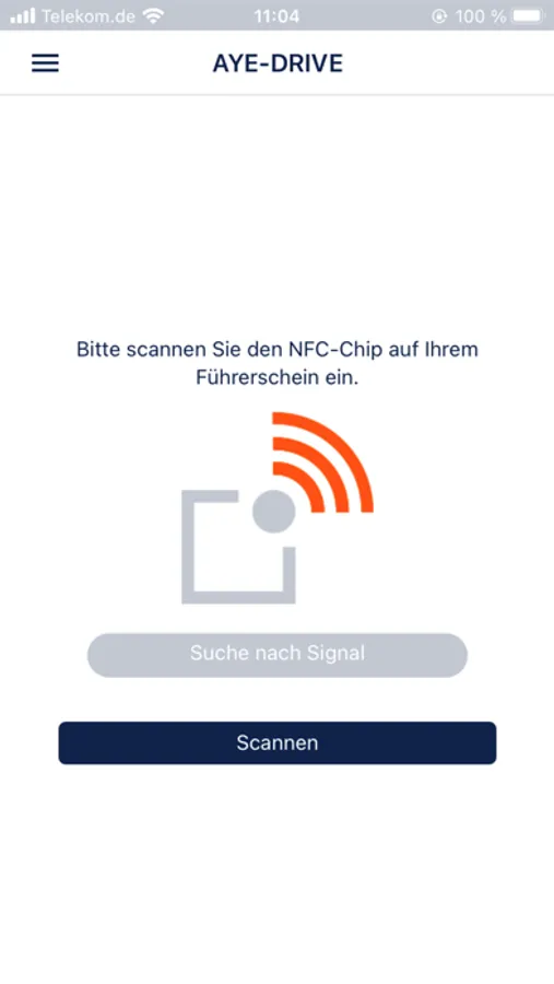 Wichtig: Diese App kann kostenlos heruntergeladen und installiert werden. Die Handhabung und das Einlesen eines NFC-Transponder funktioniert nur in Verbindung mit der kostenpflichtigen AYE-DRIVE Applikation.