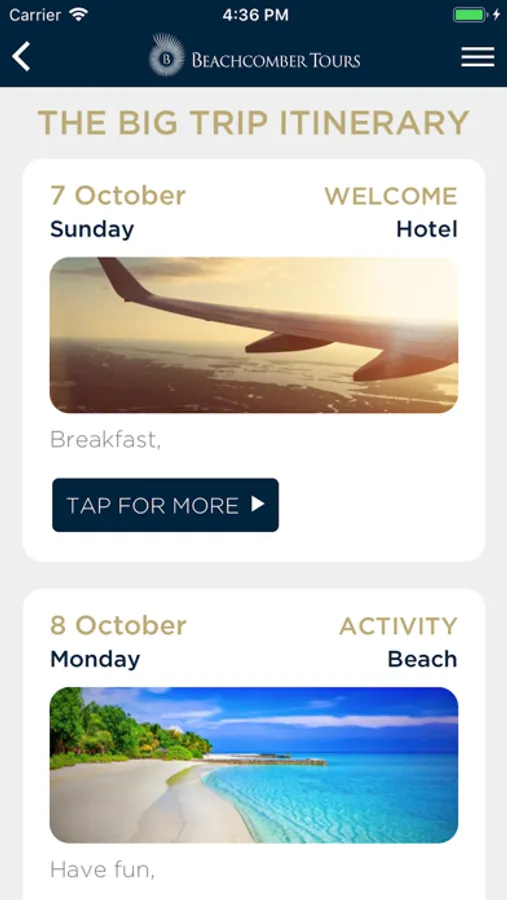 Users can receive an up-to-date itinerary for their Beachcomber educational trip, updated in real-time.