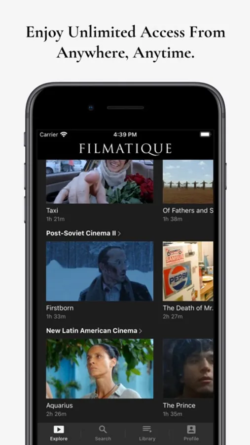 To access all features and content you can subscribe to Filmatique on a monthly or yearly basis with an auto-renewing subscription right inside the app.* Pricing can vary by region and will be confirmed before purchase in the app. In app subscriptions will automatically renew at the end of their cycle.
