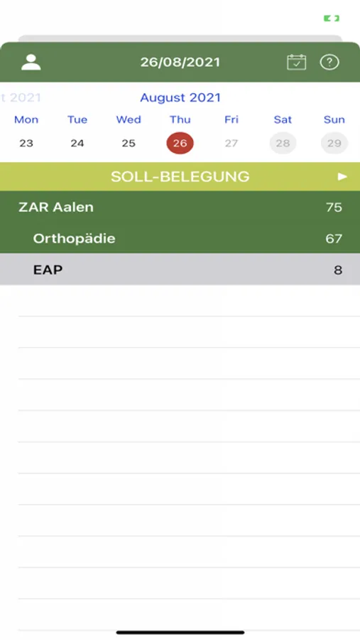 Diese App gibt einen Überblick über erwartete und tatsächliche Belegungen in den Ganz-Zentren.