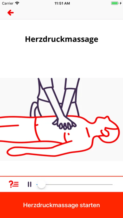 Du kannst Leben retten - mit dieser kostenlosen App! Bei einem Notfall leitet sie dich durch alle Schritte: vom Überprüfen der Lebenszeichen bis hin zur Herzdruckmassage.