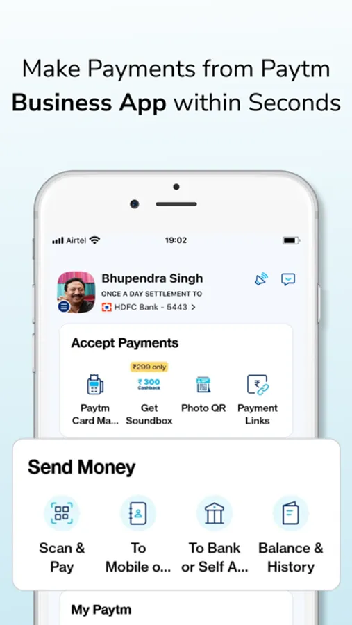Paytm for Business app is the fastest & easiest way to collect payments from customers. If you are a merchant, run a small business, a startup, a freelancer, a shop or a delivery service; then accept payments for your business from millions of Paytm customers. Collecting money has never been this easy. Thanks to the Paytm for Business app.