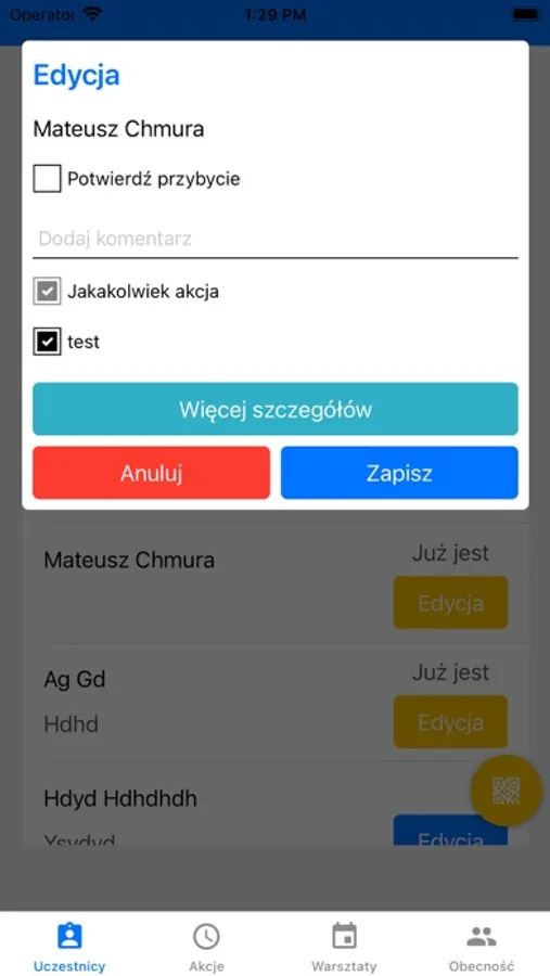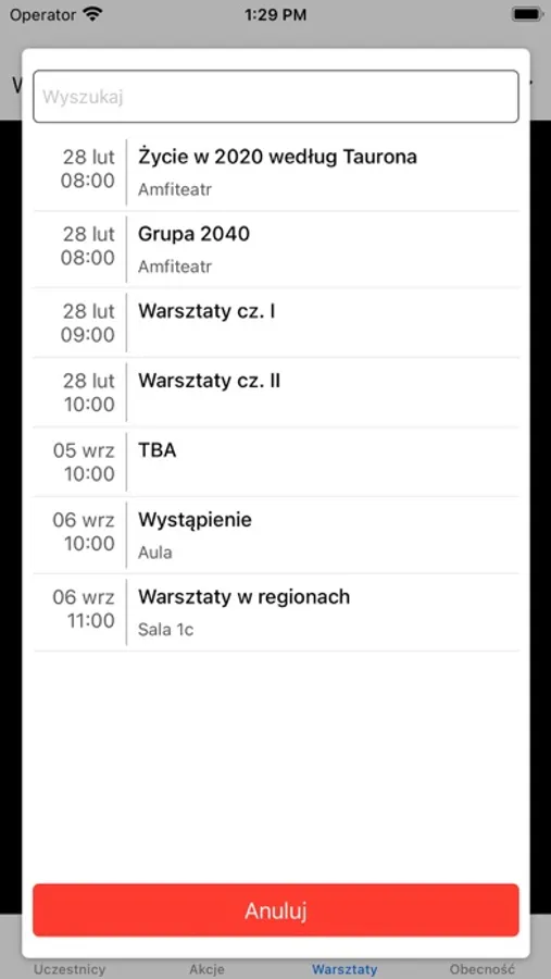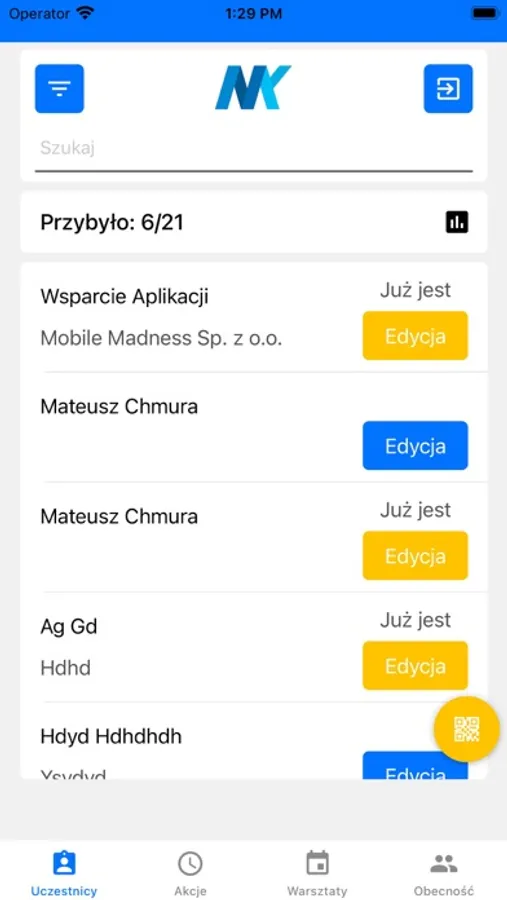 Aplikacja wspierająca recepcję na wydarzeniach.