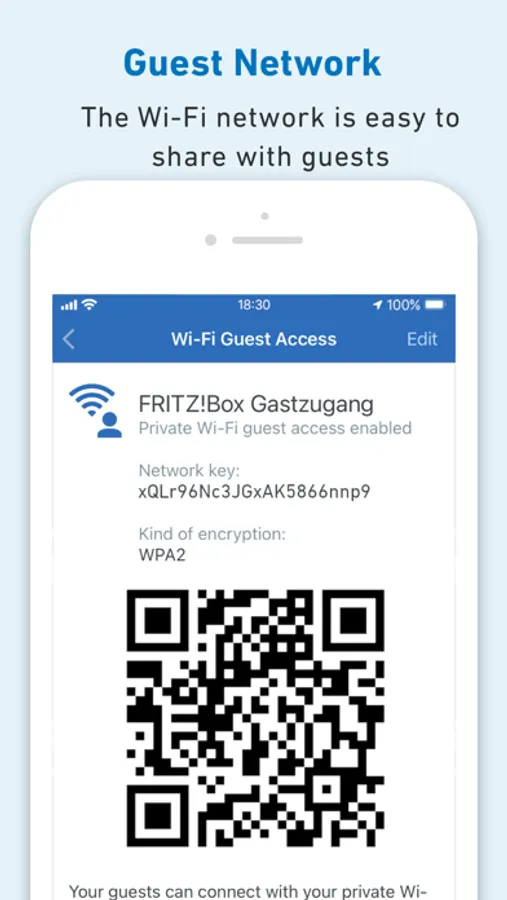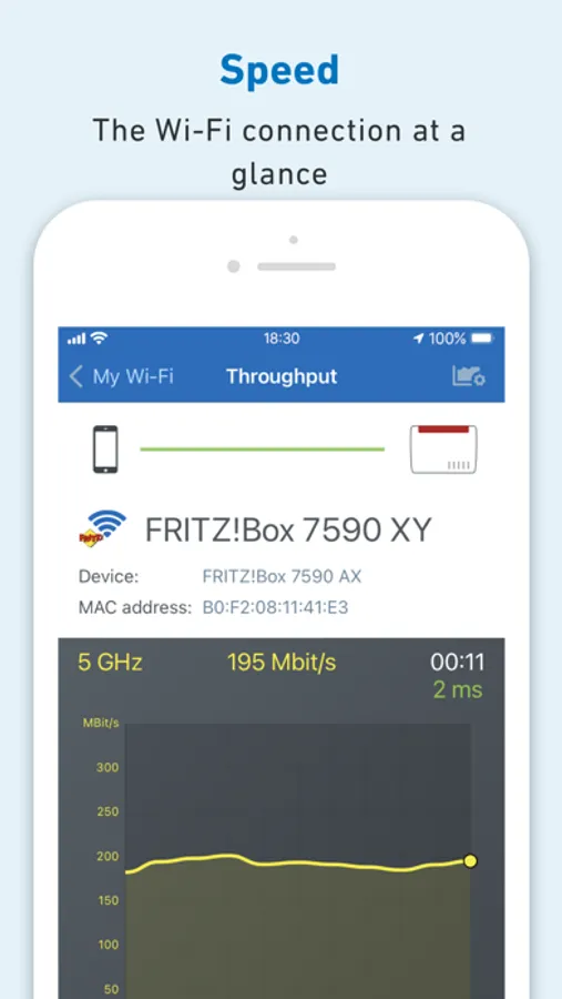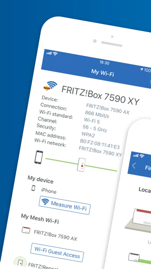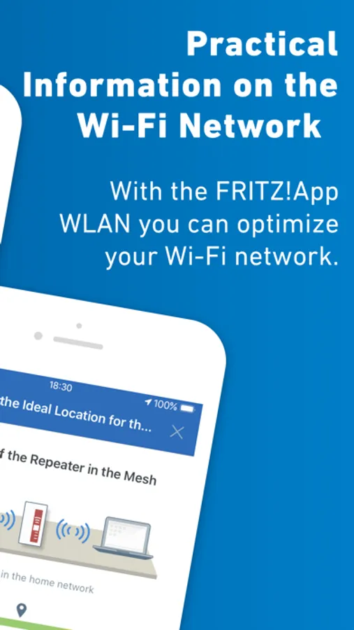 The FRITZ!App WLAN offers a clear overview of all access points in the home network and notifies about available FRITZ!OS updates for your FRITZ! devices. The FRITZ!App WLAN makes it possible recognize whether your iOS device is connected with the FRITZ!Box via a FRITZ!WLAN Repeater or a FRITZ!Powerline adapter.