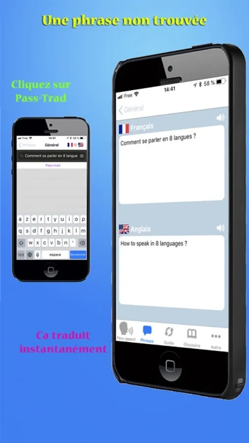 En mode connecté, vous pouvez interroger l'application pour faire une traduction en simultané vers la langue de son choix.