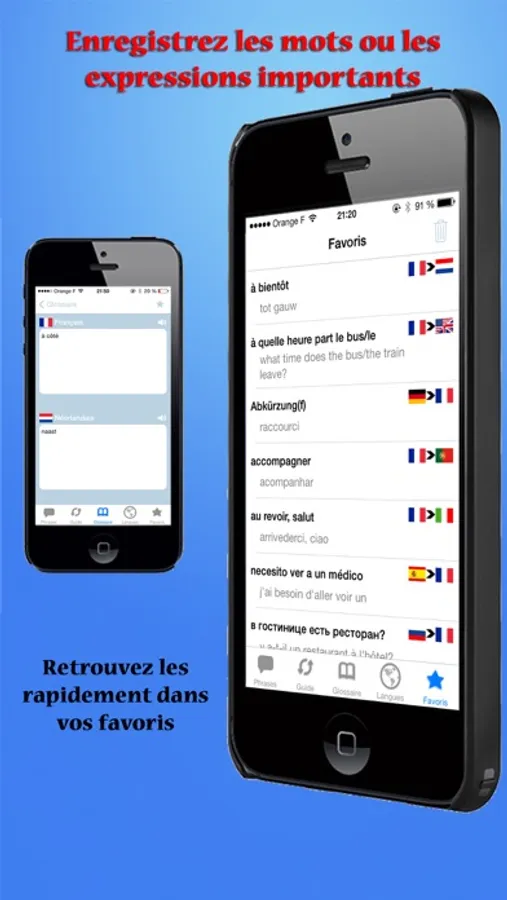 Pour les phrases que vous utiliserez le plus souvent, vous avez la possibilité de les enregistrer dans les favoris et ainsi d’y accéder encore plus rapidement.