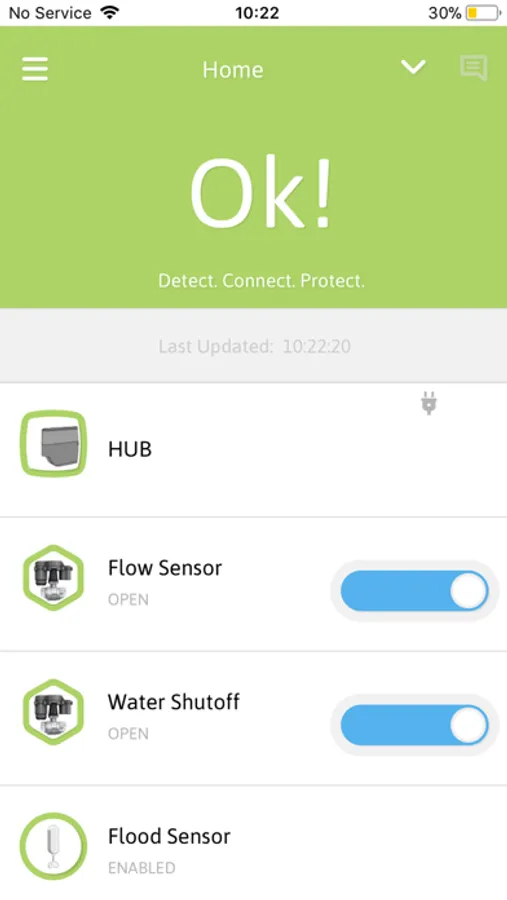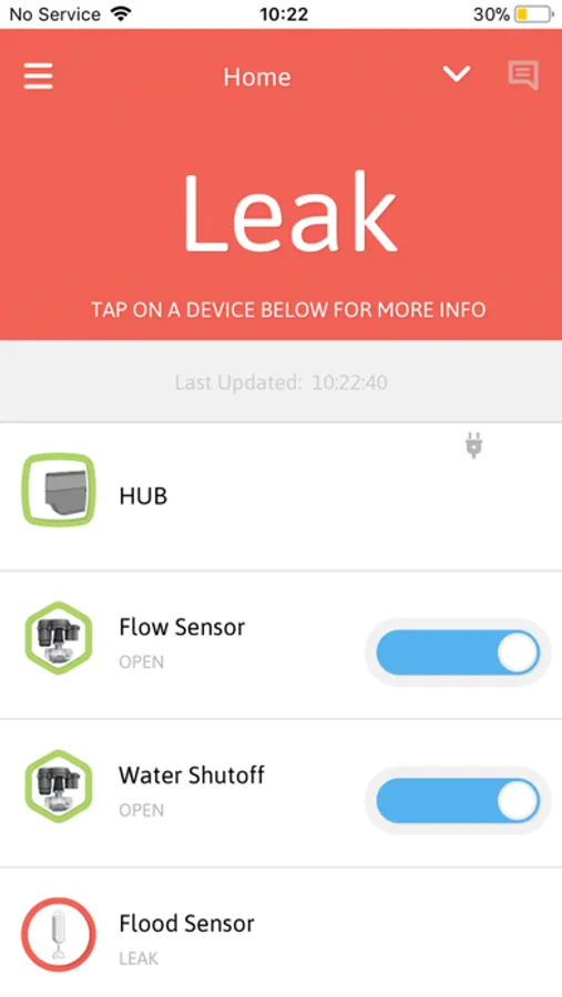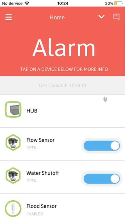 If the sensor detects a leak, it signals the valve to shut off and sends its location, alarm type and valve status back to the hub. The hub sends notifications to the user via the app. Fault notifications and status check-ins are communicated through the app from any Internet-enabled device.