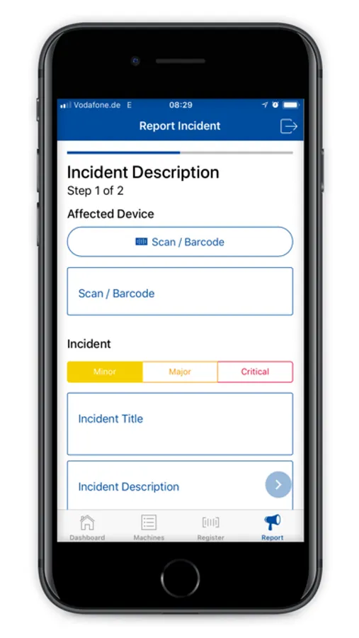 Die „Serviceanfrage“ ermöglicht die schnelle Übermittlung von Serviceanfragen zu einzelnen Geräten.